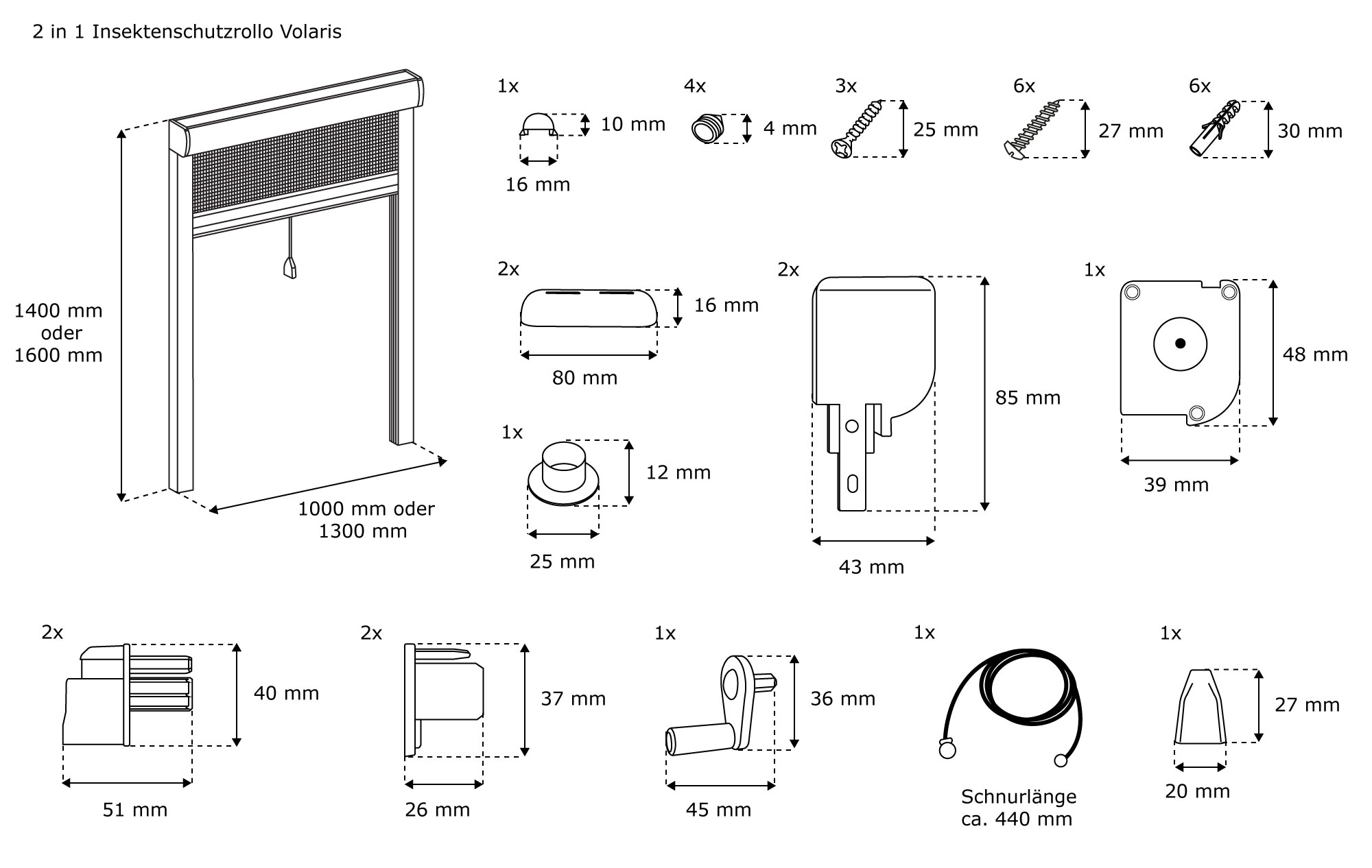 | Produktbezeichnung: | 2 in 1 Insektenschutzrollo Volaris | PVC Rahmen, 100 x 140 cm, weiß |