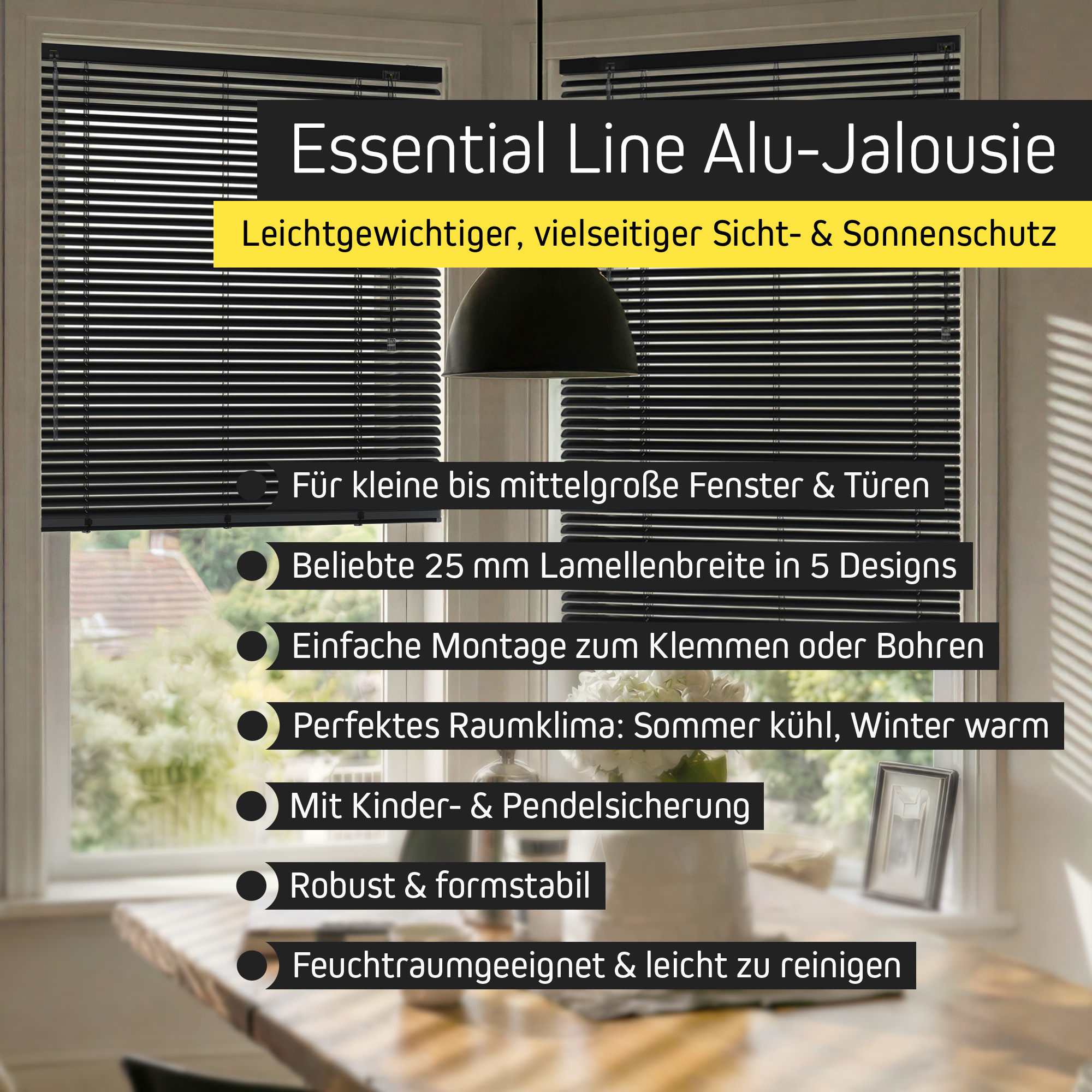 | Produktbezeichnung: | Essential Line Aluminium-Jalousie nach Maß | 25 mm |