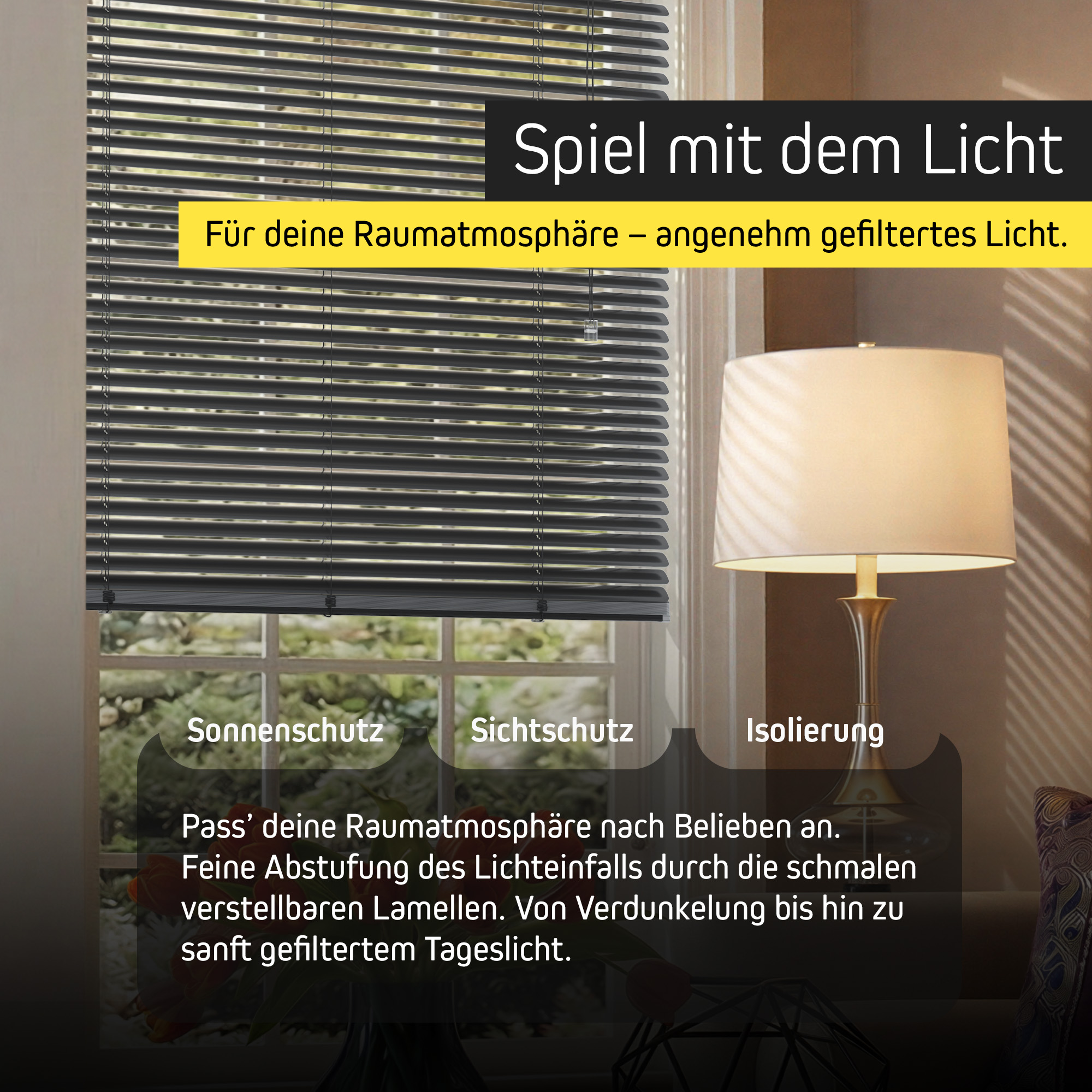 Aluminium überzeugt durch seine Robustheit, Formstabilität und lässt sich kinderleicht reinigen – einfach feucht abwischen, fertig. - Stufenlose Lichtregulierung