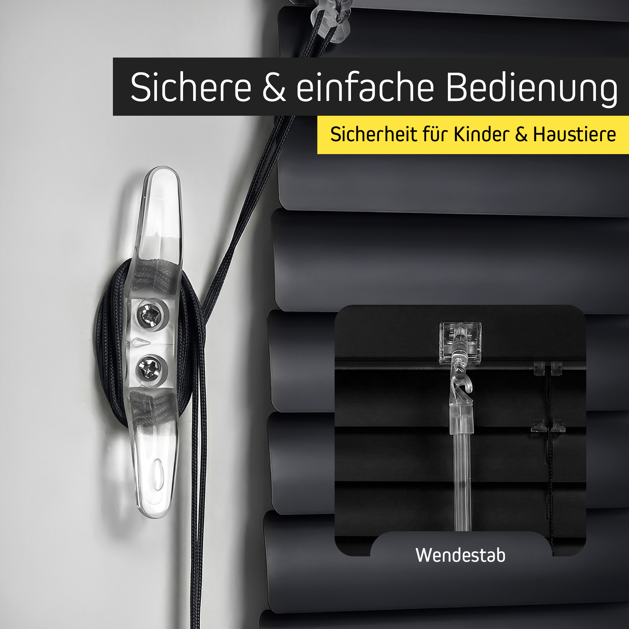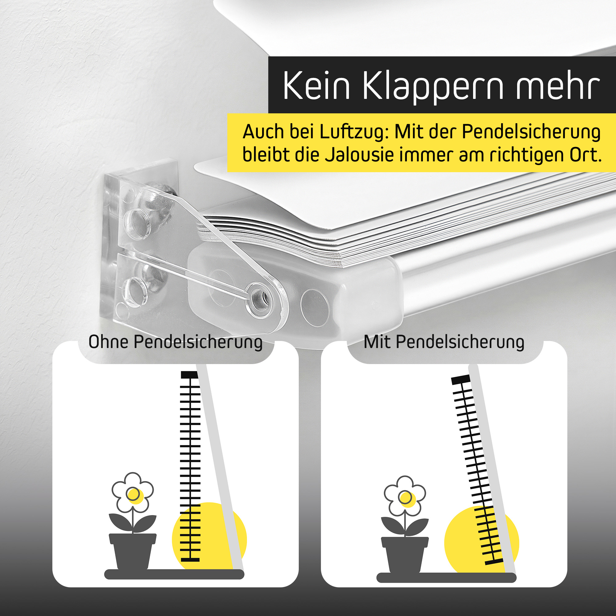 Mit modernem, transparentem Schnurwickler als Kindersicherung und praktischer Pendelsicherung für sicheren Halt auch bei gekipptem Fenster. - UV-beständig und lichtecht