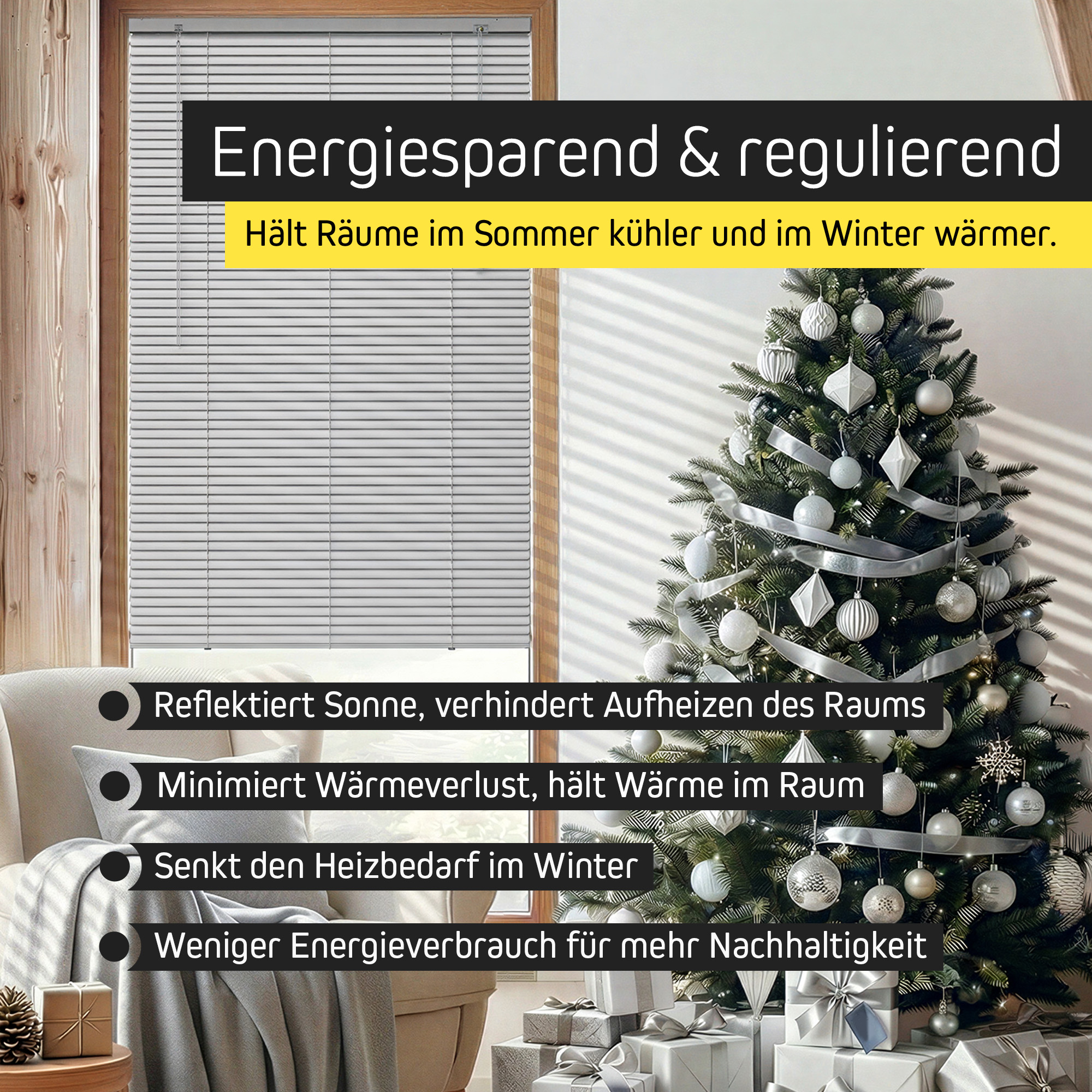 Durch die gezielte Regulierung der Sonneneinstrahlung reduzierst du deinen Heiz- und Kühlbedarf und schonst damit Geldbeutel und Umwelt. - Wärmeregulierend