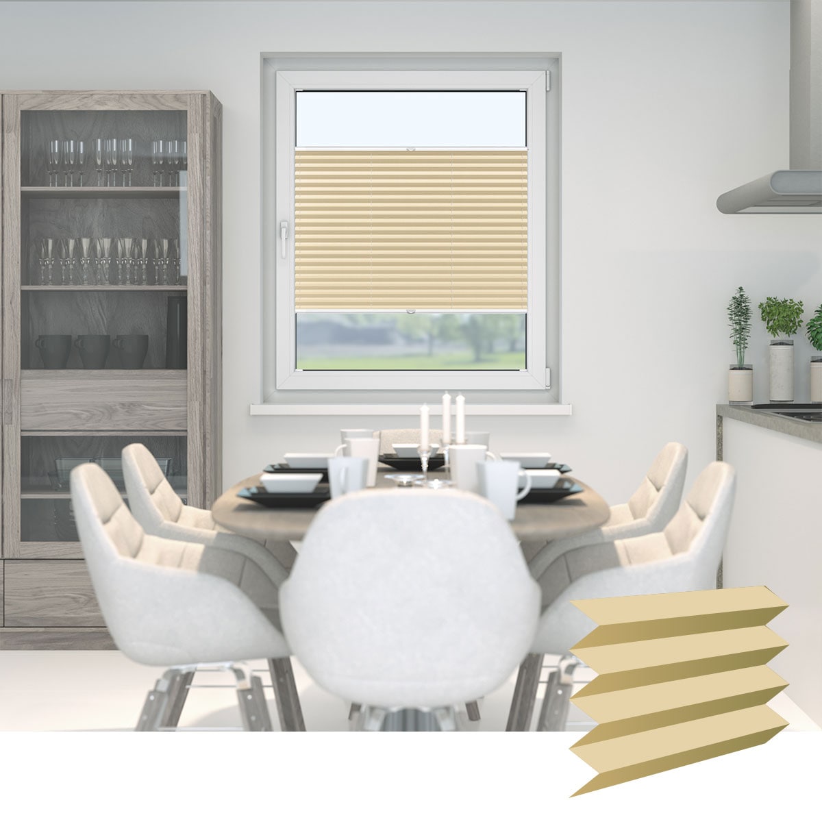 Die Montage des Elegance Plissees funktioniert ganz einfach und ohne Bohren, dafür mit Klemmen. Der Rahmen besteht hierbei aus Aluminiumschienen in einem eleganten und modernen Design. Das Modell eignet sich für Kunststoff- und Holzfenster, sowie für schräge und gerade Glasleisten. Du kannst die Länge und Breite des Elegance Plissees millimetergenau festlegen. Die verwendeten Klemmträger passen auf unterschiedlich dicke Fensterrahmen. Wähle neben den Maßen auch den für dich passenden Verdunkelungsgrad – von leicht lichtdurchlässig bis vollverdunkelnd. Als Stoffe stehen Polyester, Vlies, ein Crush- und ein Wabenstoff zur Auswahl.