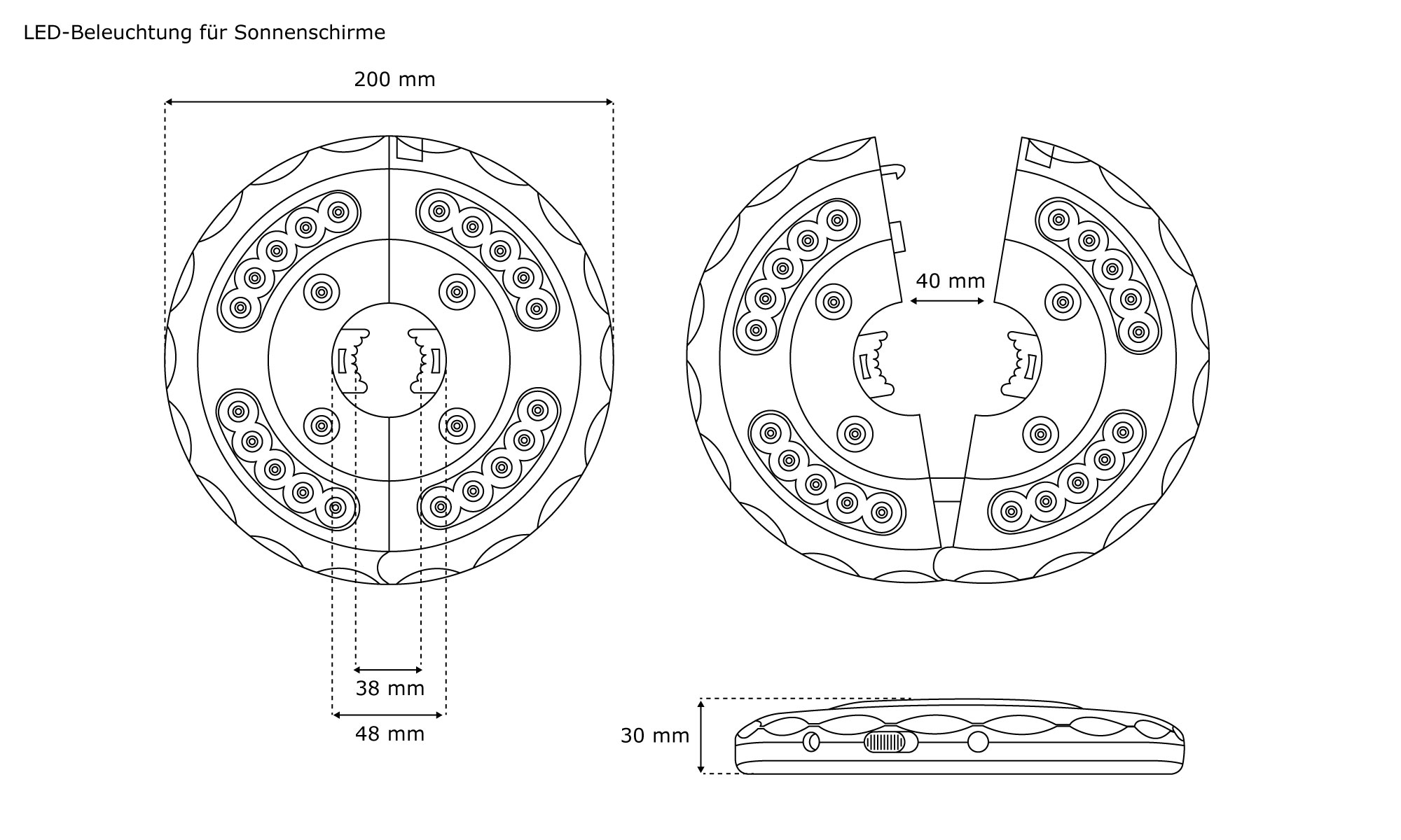 | Produktbezeichnung: | LED-Beleuchtung für Sonnenschirme |
