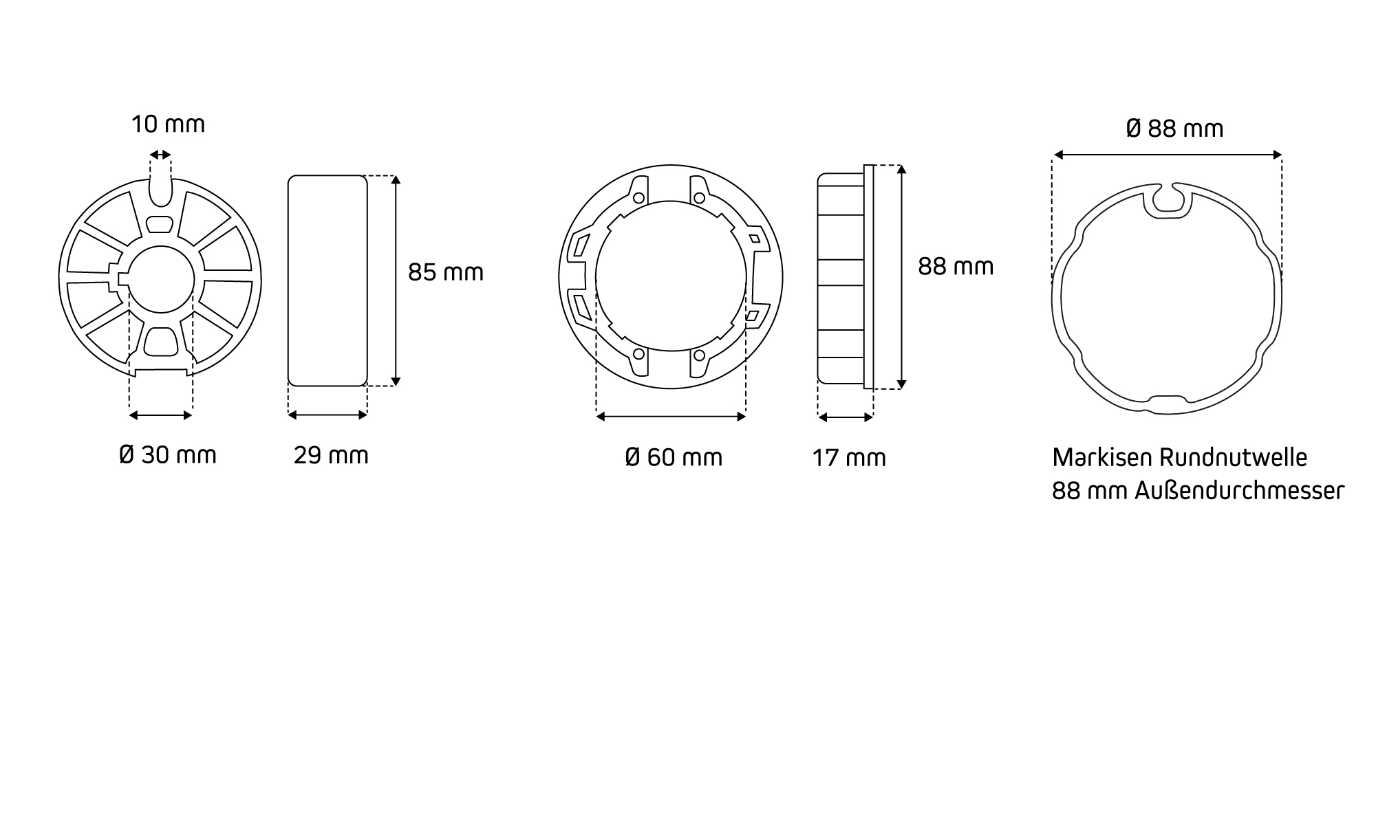 | Produktbezeichnung: | Motoradapter für Rollladenmotoren SL | SLAN8859, 88 mm Nutwelle |