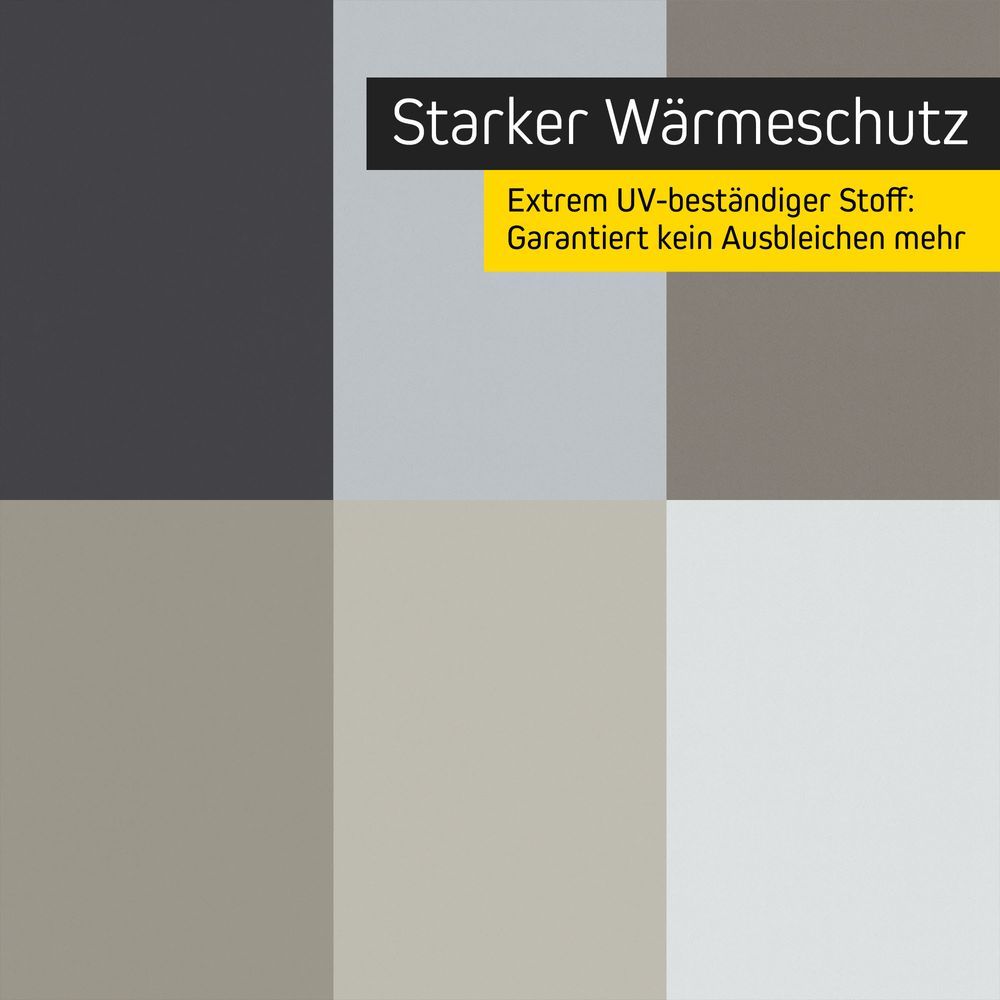 - Extrem UV-beständige Stoffe, garantiert kein Ausbleichen