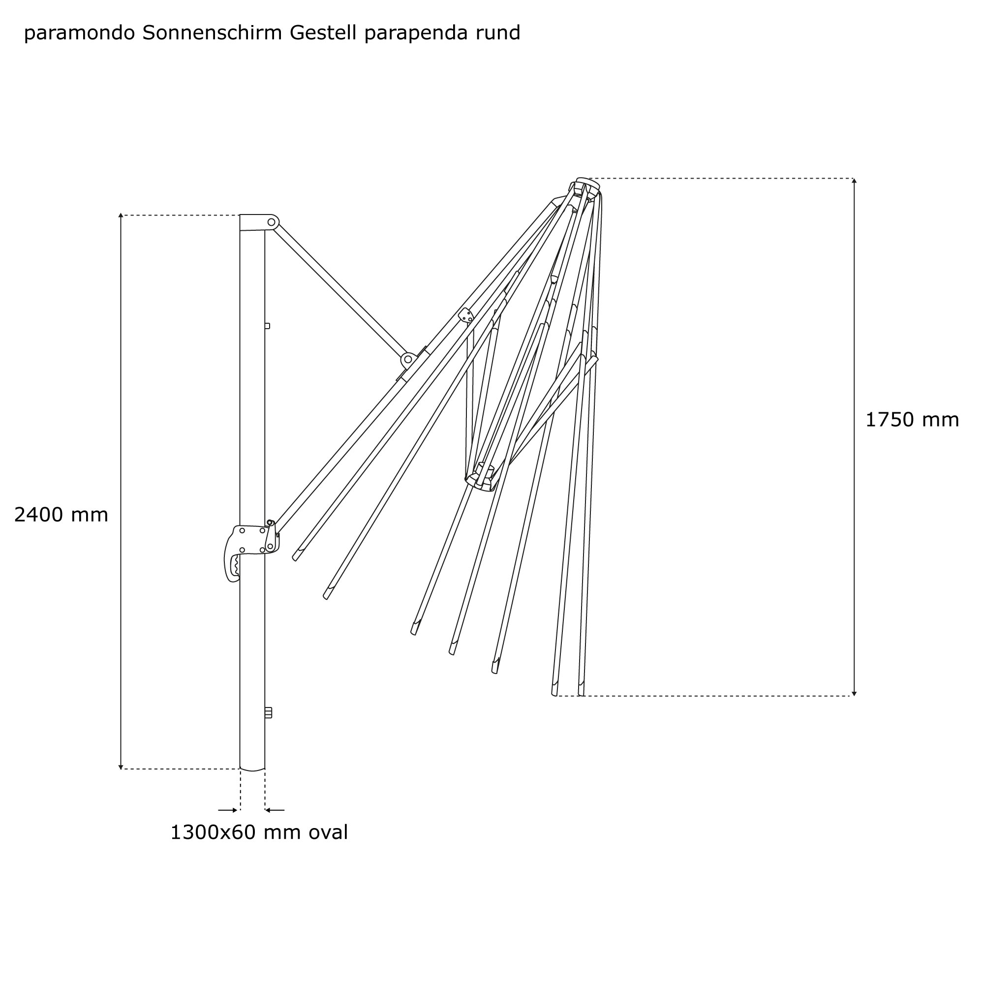 | Produktbezeichnung: | Sonnenschirm Gestell für parapenda Ampelschirm | 3,5 m, rund, anthrazit + Standkreuz |