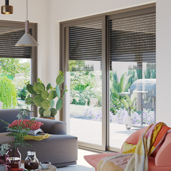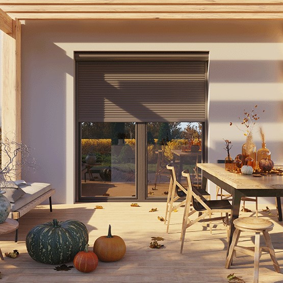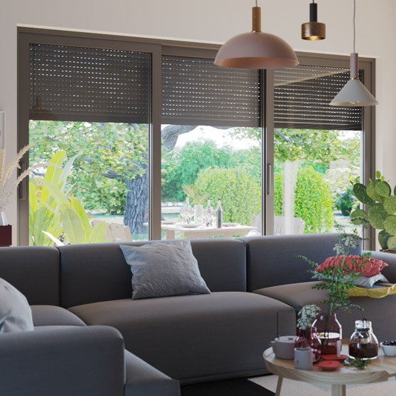 Der Panzer des nach Maß gefertigten Außenrollladens besteht aus einem Satz Lamellen (aus Aluminium oder PVC), die gehoben und gesenkt werden können. Seine Hauptaufgabe ist der Schutz vor starker Sonneneinstrahlung und neugierigen Blicken. Er bewegt sich entlang seitlicher Führungsschienen und versteckt sich beim Zusammenfalten in einem ästhetischen Kasten. Der untere Teil der Lamellen ist perforiert, sodass, wenn die Abdeckung nicht vollständig abgesenkt ist, gefiltertes, diskretes Licht ins Innere fällt.