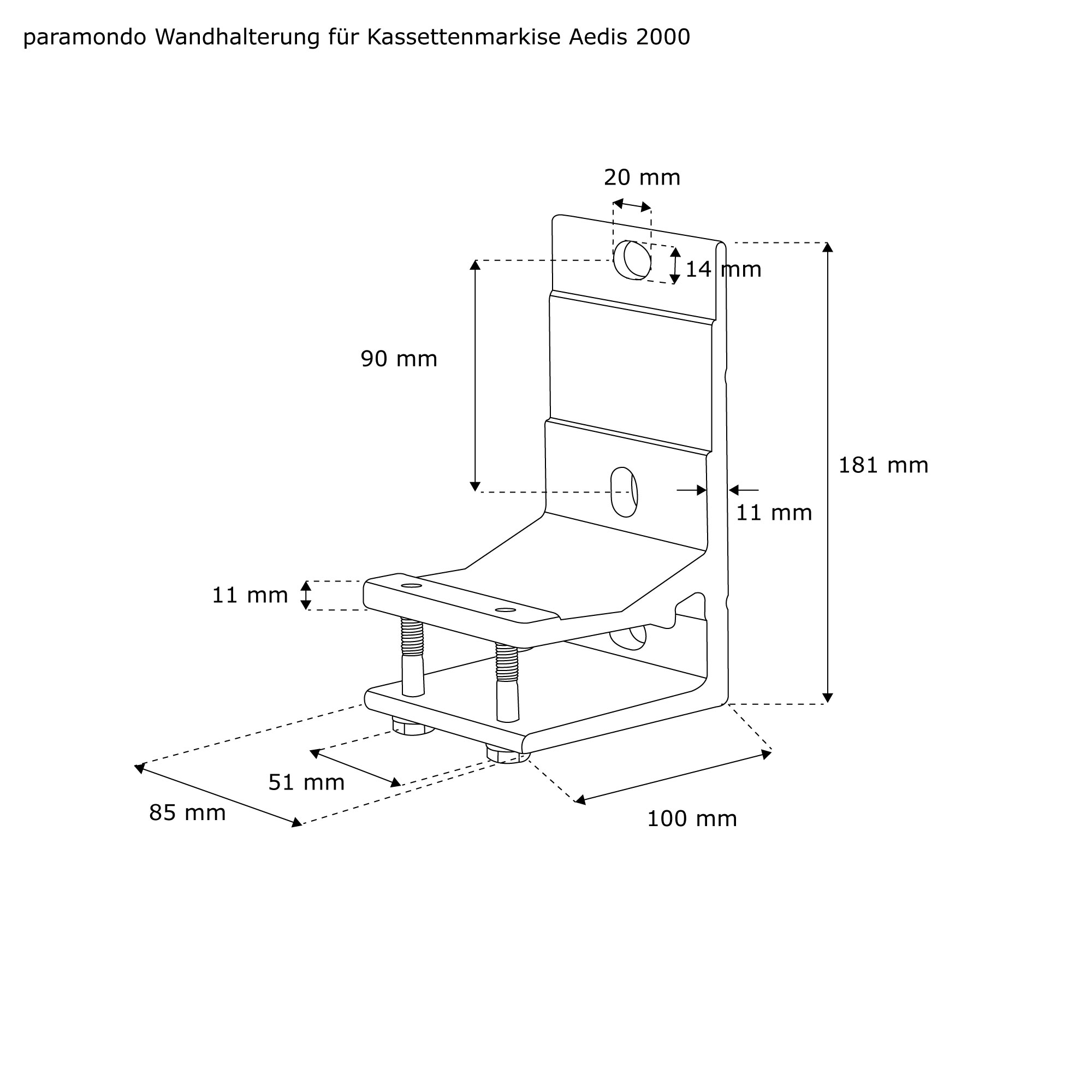 Sollte dein Originalteil beschädigt oder verlorengegangen sein, erhältst du mit der paramondo Wandhalterung für die Kassettenmarkise Aedis 2000 das Original-Ersatzteil für eine einfache Montage.