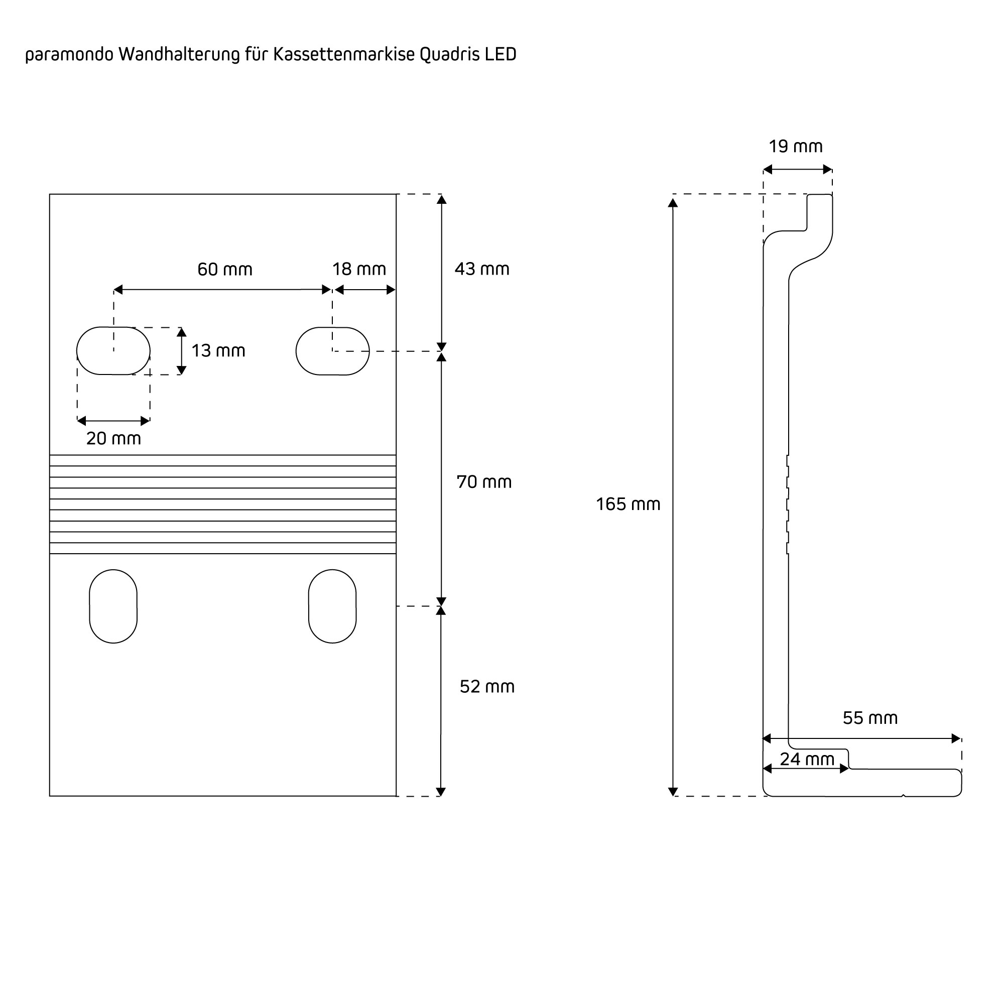 | Produktbezeichnung: | Wandhalterung für Kassettenmarkise Quadris LED | weiß |