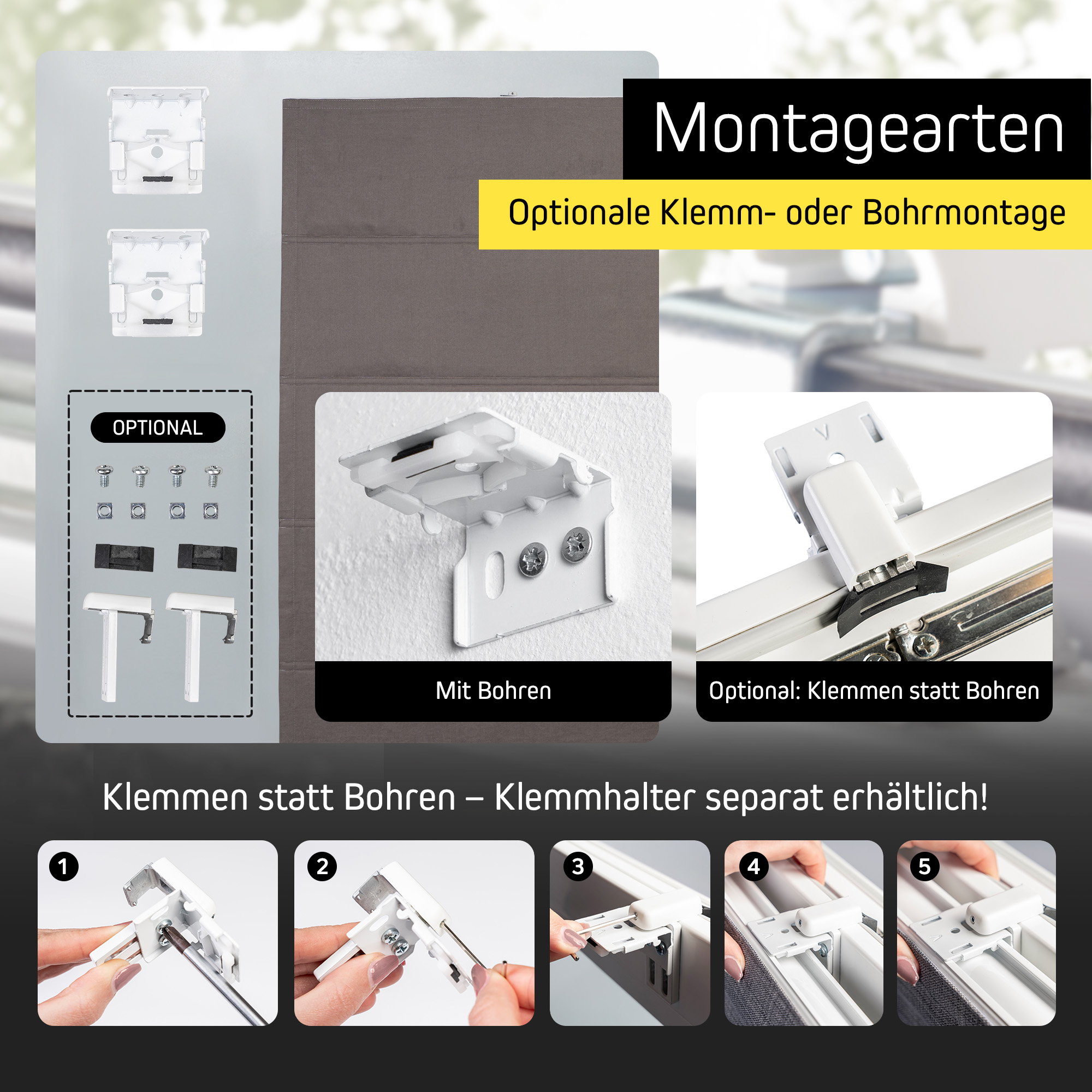 - Einfache Montage zum Klemmen oder Bohren